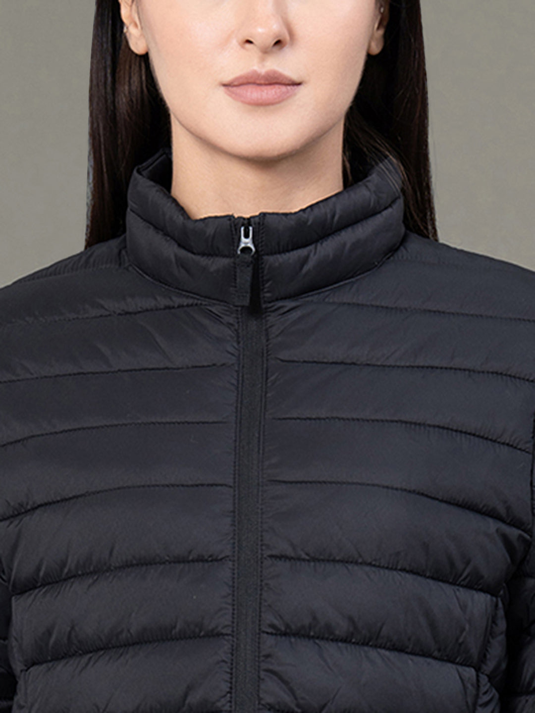 Stand Collar: Features a stand collar that enhances the jacket's modern look while providing added coverage and warmth.
